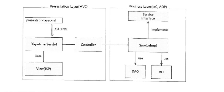 프레젠테이션레이어와 비즈니스레이어로 구성 된 시스템 구조