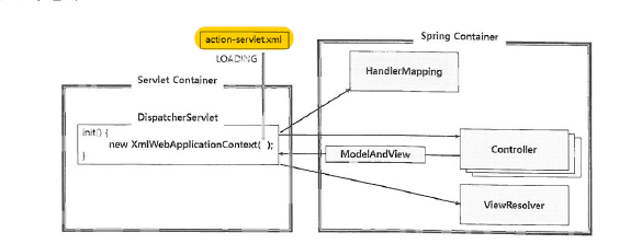 - 실행 시 DispatcherServlet의 init()메서드를 통해 XmlWebApplicationContext 스프링컨테이너 구동
