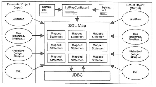 SqlMap.xml : SQL 명령어들을 Map 구조로 저장하여 관리