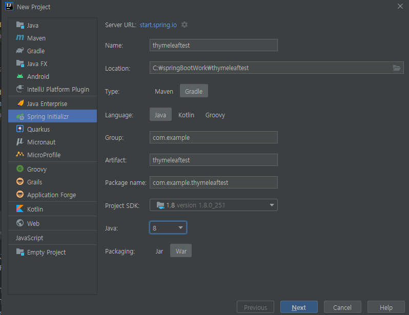 thymeleaf 프로젝트 생성 시 주의사항