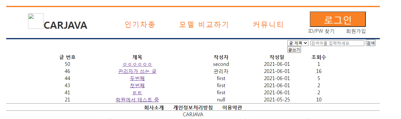 게시판 기능 구현 완료(CSS 구현 전 )1_회원 메인 / 관리자 메인 본문